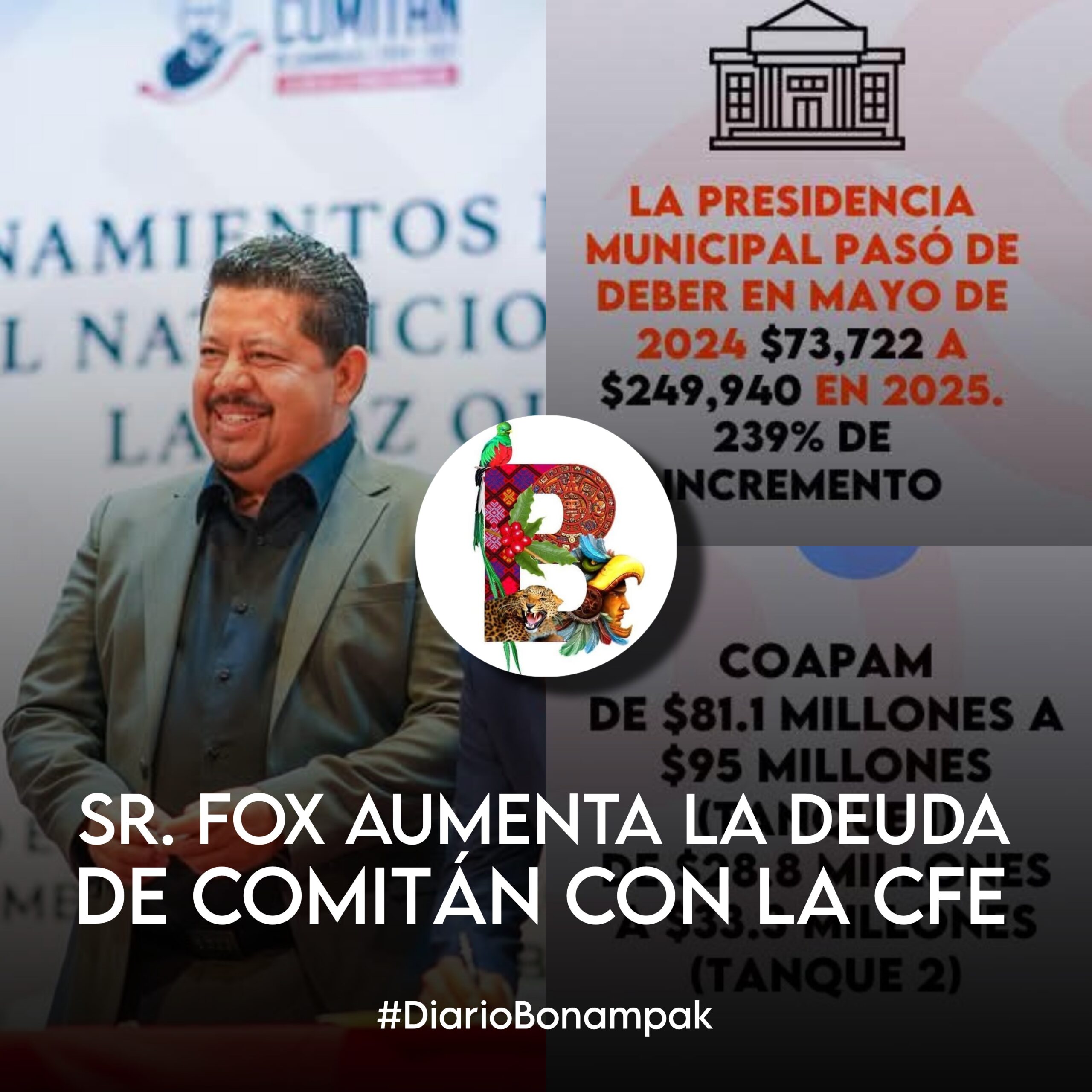 CRECE DEUDA DE COMITÁN CON CFE A PESAR DE PROMESAS DEL PRESIDENTE MUNICIPAL SR. FOX