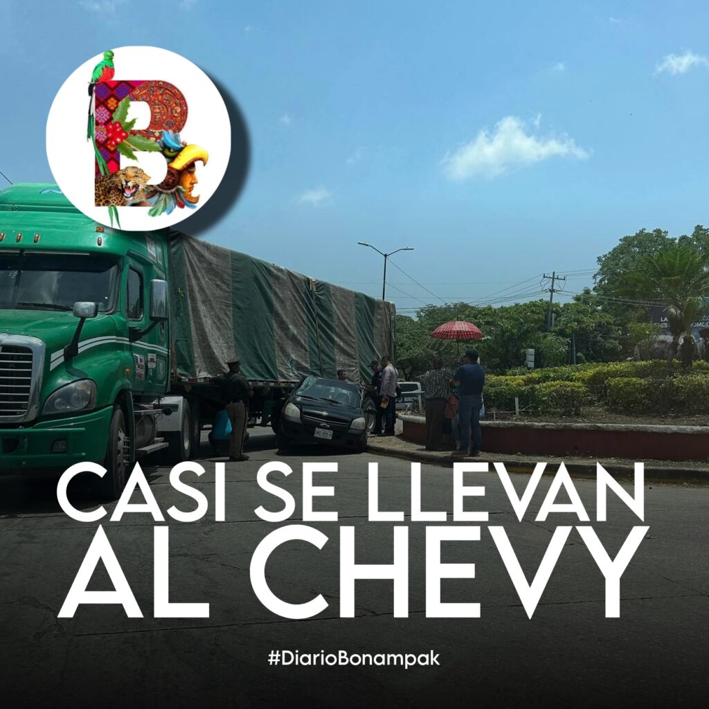 Un accidente vehicular se registró hace unos minutos en la glorieta de La Carreta, en la entrada poniente de Tuxtla Gutiérrez, cuando un auto particular intentó ganarle el paso a un tráiler y quedó prensado.