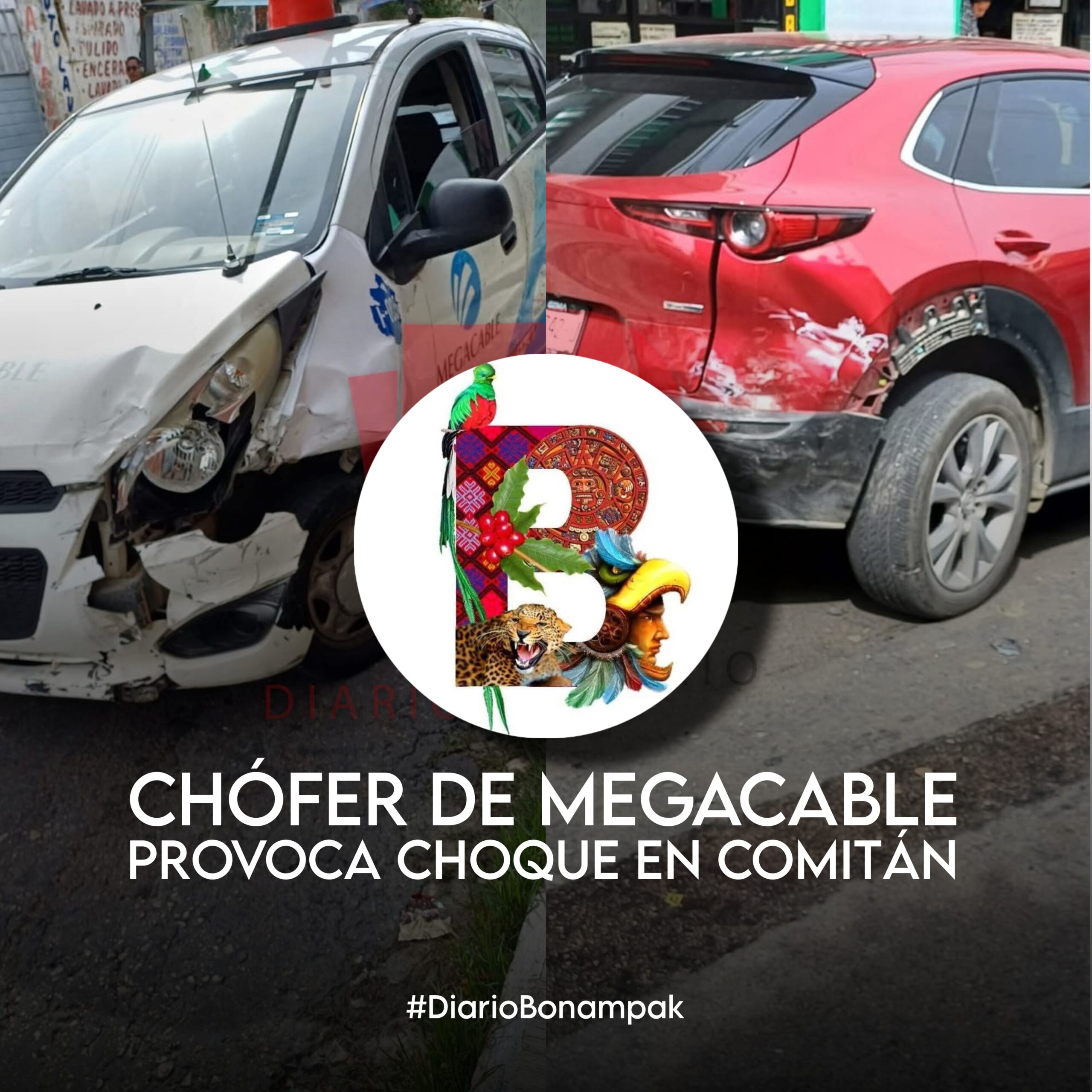 CHOQUE EN SAN SEBASTIÁN, COMITÁN, CHOFER DE MEGACABLE PROVOCA ACCIDENTE