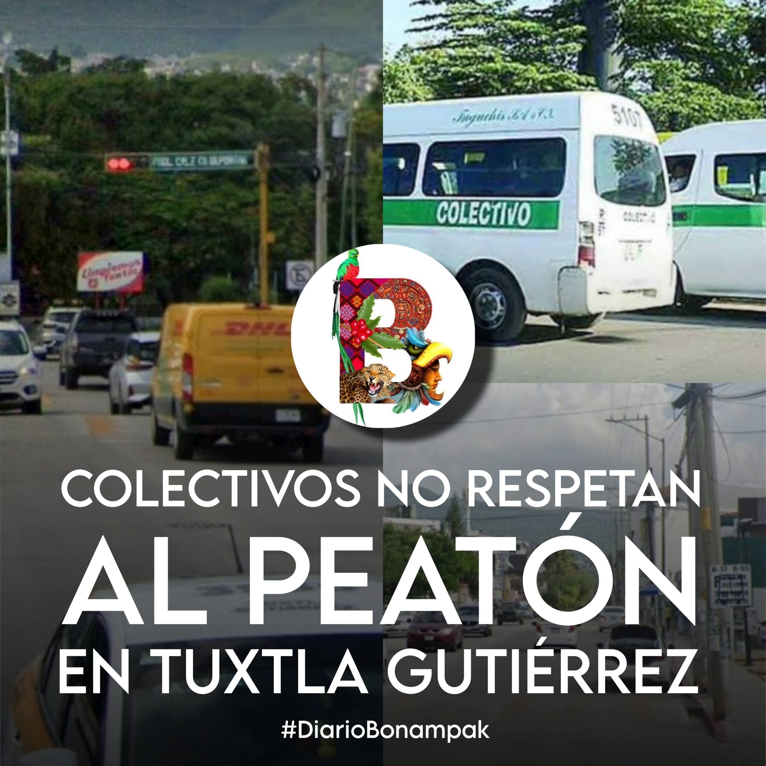 Según testimonios, los choferes de diferentes rutas de transporte colectivo ponen en riesgo la seguridad de los peatones, especialmente mujeres con niños, al conducir de manera agresiva y no respetar los espacios peatonales.