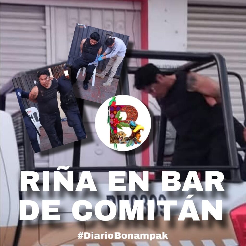 Comitán, Chiapas. – Una fuerte riña se registró la tarde de este martes en un bar ubicado a un costado de la central de abasto en Comitán, dejando a dos personas heridas y un detenido.