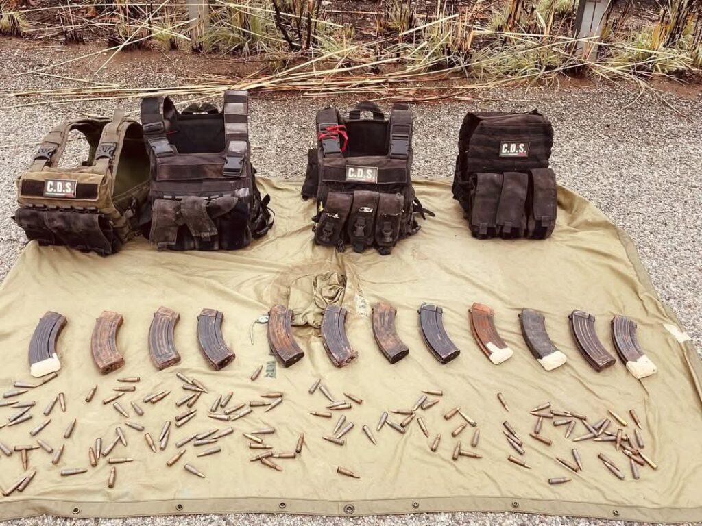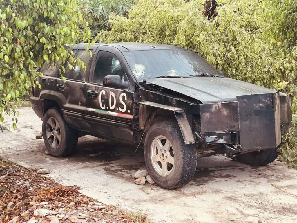 El vehículo, un Grand Cherokee de color negro, presentaba impactos de bala y leyendas de un grupo delictivo.En el interior de la camioneta, se encontraron cuatro chalecos balísticos, diez cargadores metálicos de calibre 7.62 mm, un cargador de plástico del mismo calibre y 50 cartuchos útiles. El vehículo y el equipo asegurado fueron puestos a disposición de las autoridades para las investigaciones correspondientes.