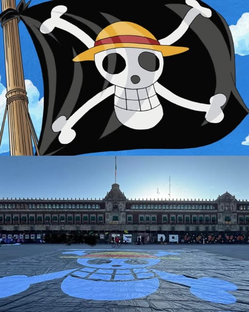 Una enorme bandera de los mugiwaras amaneció desplegada este día en plena plancha del Zócalo de la Ciudad de México, sorprendiendo a todos los que pasaban por el lugar.
