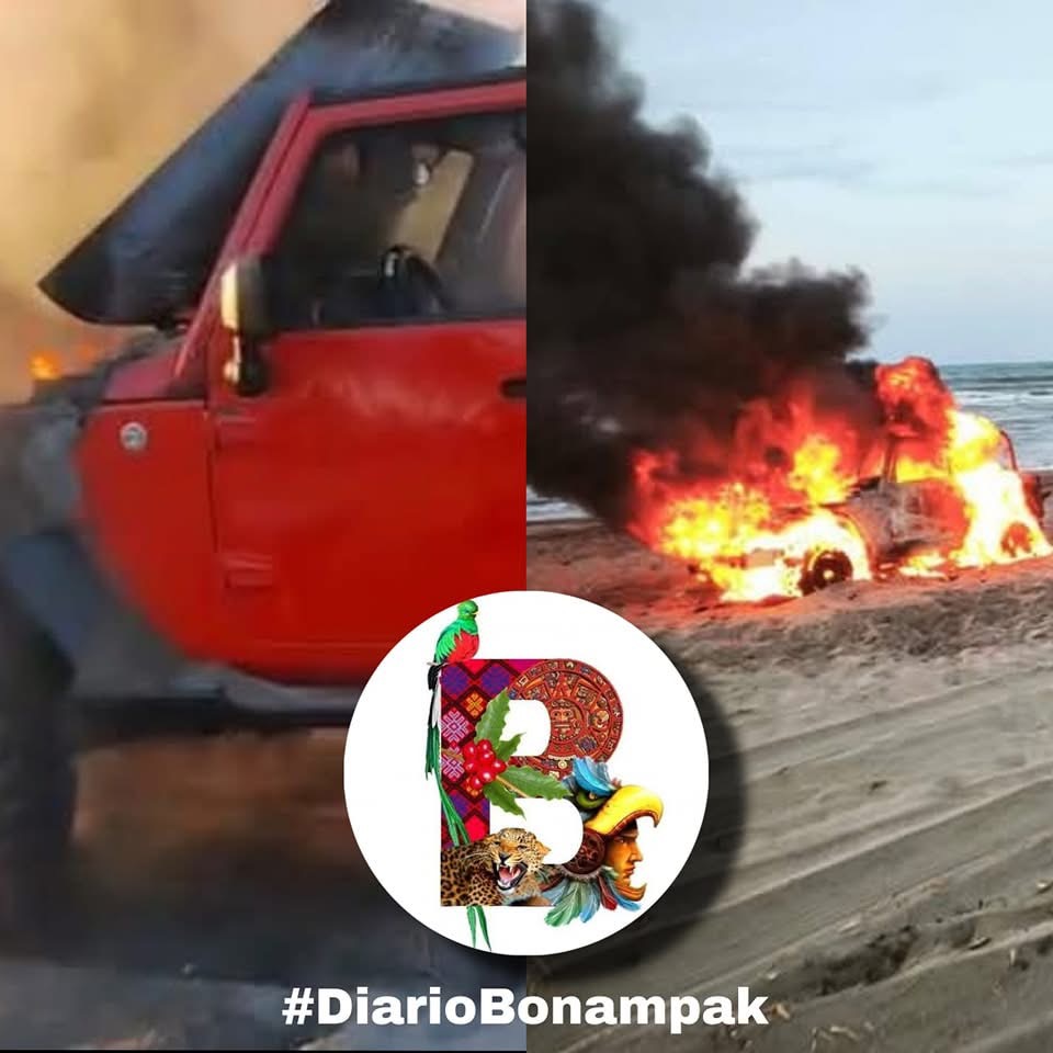INCENDIO DE JEEP EN PLAYA DORADA, TABASCO