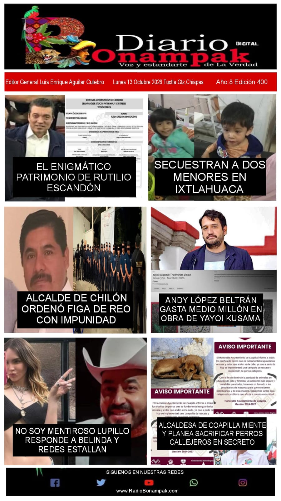 ÉCHALE UN VISTAZO A NUESTRA PORTADA DE ESTA SEMANA, SIGUENOS EN TODAS NUESTRAS REDES SOCIALES Y ENTERATE DE TODO LO QUE SUCEDE EN CHIAPAS Y EL MUNDO